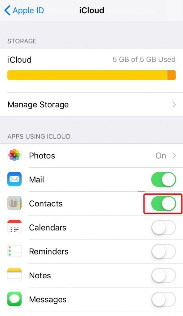 Sekiranya anda pilih turn off, senarai Contacts anda pada telefon tidak akan dipaparkan pada akaun iCloud anda dan ianya tidak dapat dieskport ke fail Excel.